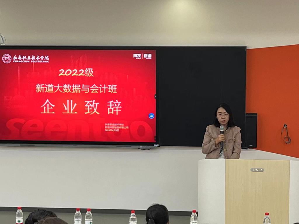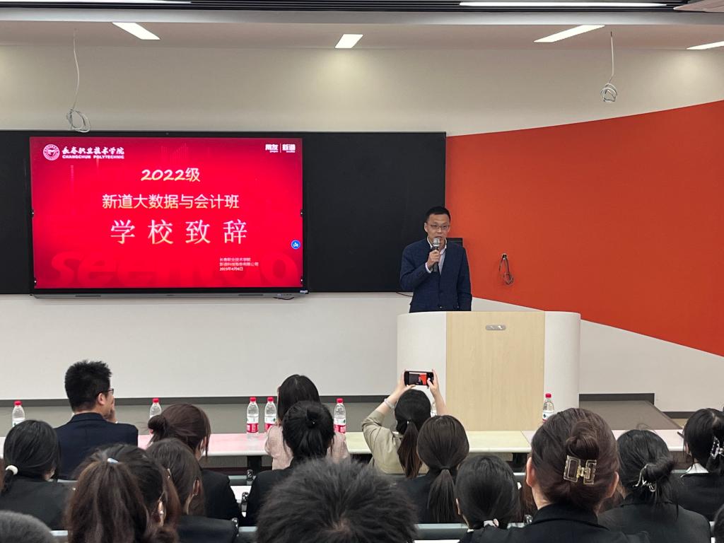 2023年4月6日下午,长春职业技术公司beats365亚洲版官网与新道科技股份有限公司共建“大数据与会计班2022级新生开班仪式”隆重举行。