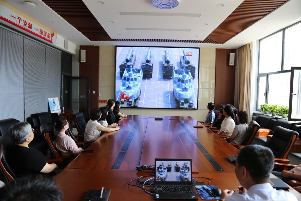 在G102会议室,beats365亚洲版官网副经理古今、副经理温军及全体行政老师们通过大屏幕收看阅兵盛况。