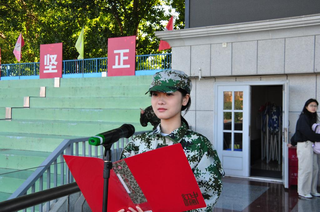 2025级市场营销专业马晋同学代表新生发言,她目光灼灼、语带憧憬,并郑重承诺:铭记抗战历史,不负先辈厚望;以新时代青年的担当,在大学殿堂中勤学善思、笃行不怠,努力成长为有理想、有本领、有担当的商贸人。