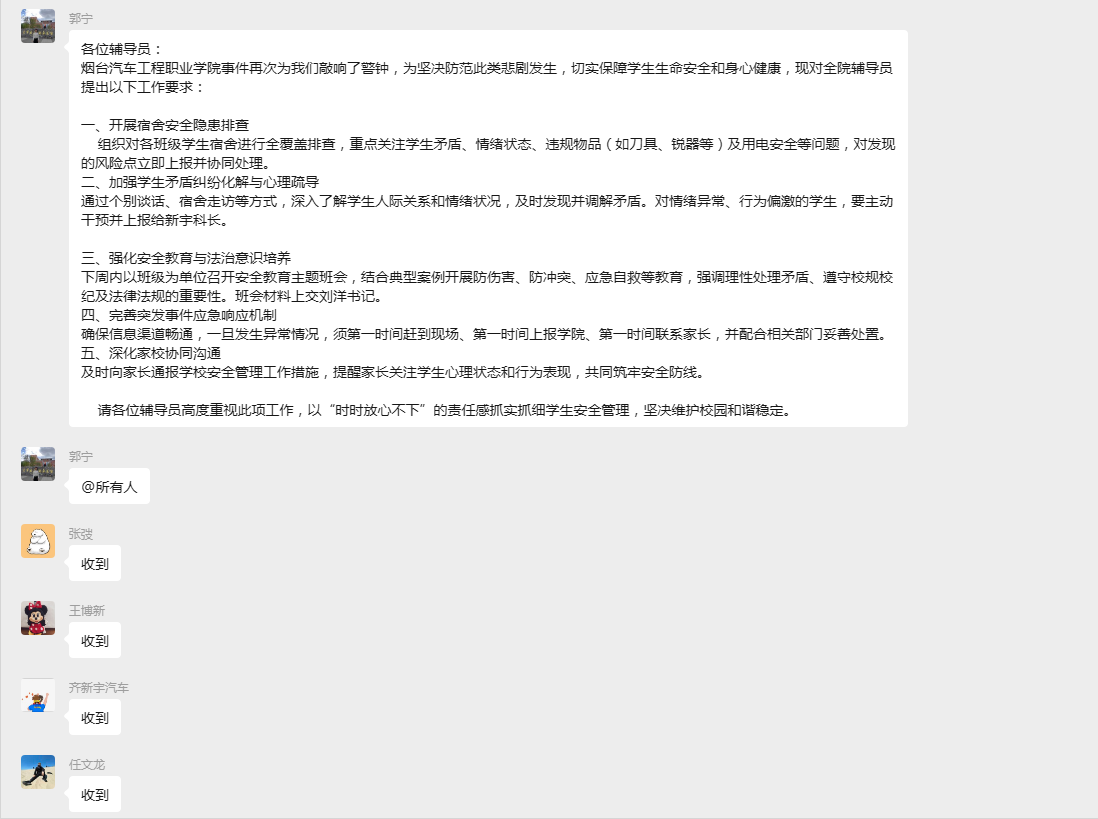 beats365亚洲版官网员工科第一时间向全体辅导员发出安全工作提醒,要求各班级立即开展宿舍安全隐患排查,重点关注员工矛盾、情绪状态和违规物品等问题,做到早发现、早干预、早解决。