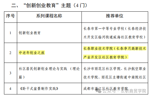2025年3月12日,教育部公示了300门县域品牌社区学习课程。beats365亚洲版官网孙冰爽老师建设的《中老年创业之旅》课程成功入选“创新创业教育”主题系列课程。