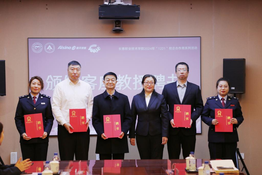 为打造技艺精湛的良匠金师团队,促进校企人员互兼互聘机制,朱国辉副董事长向吉林省税务局纳税服务处副处长侯志勇、12366纳税服务热线负责人卢施阳、12366纳税服务热线首席专家宋婷婷等专家颁发客座教授聘书