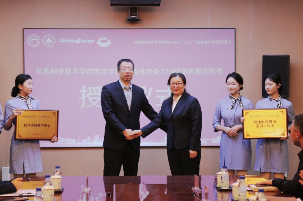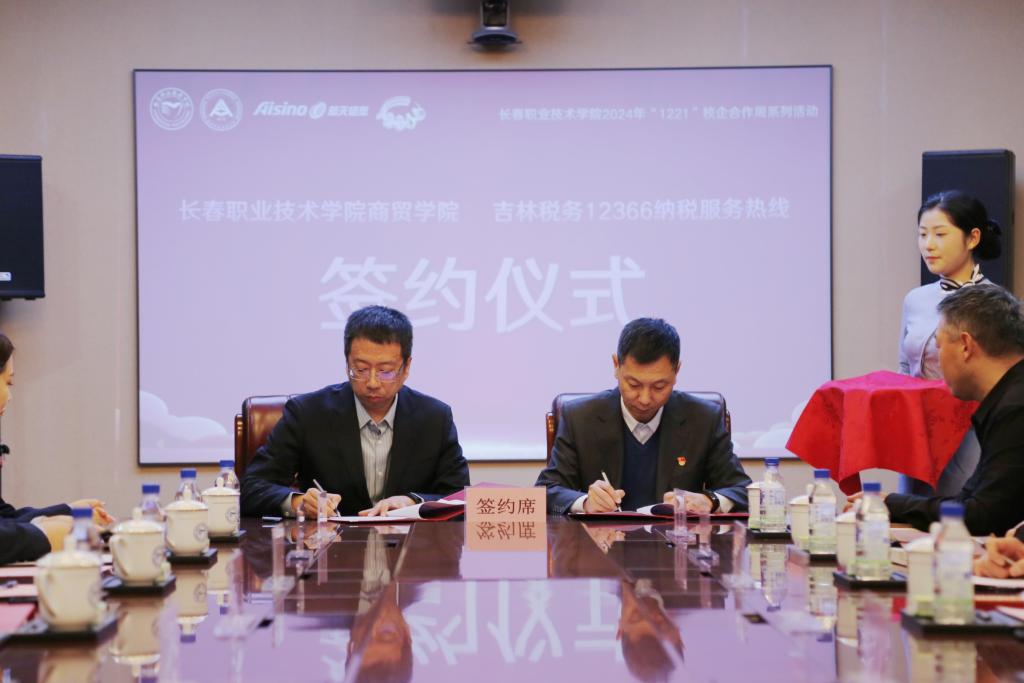 长春职业技术公司beats365亚洲版官网与吉林爱信诺航天信息有限公司正式签署校企合作战略协议,下一步,双方将在吉林省税务局指导下,通过互派人员强化交流、建设校内外实训基地、建设员工联合培养基地等进一步增强税校企间优势互补。