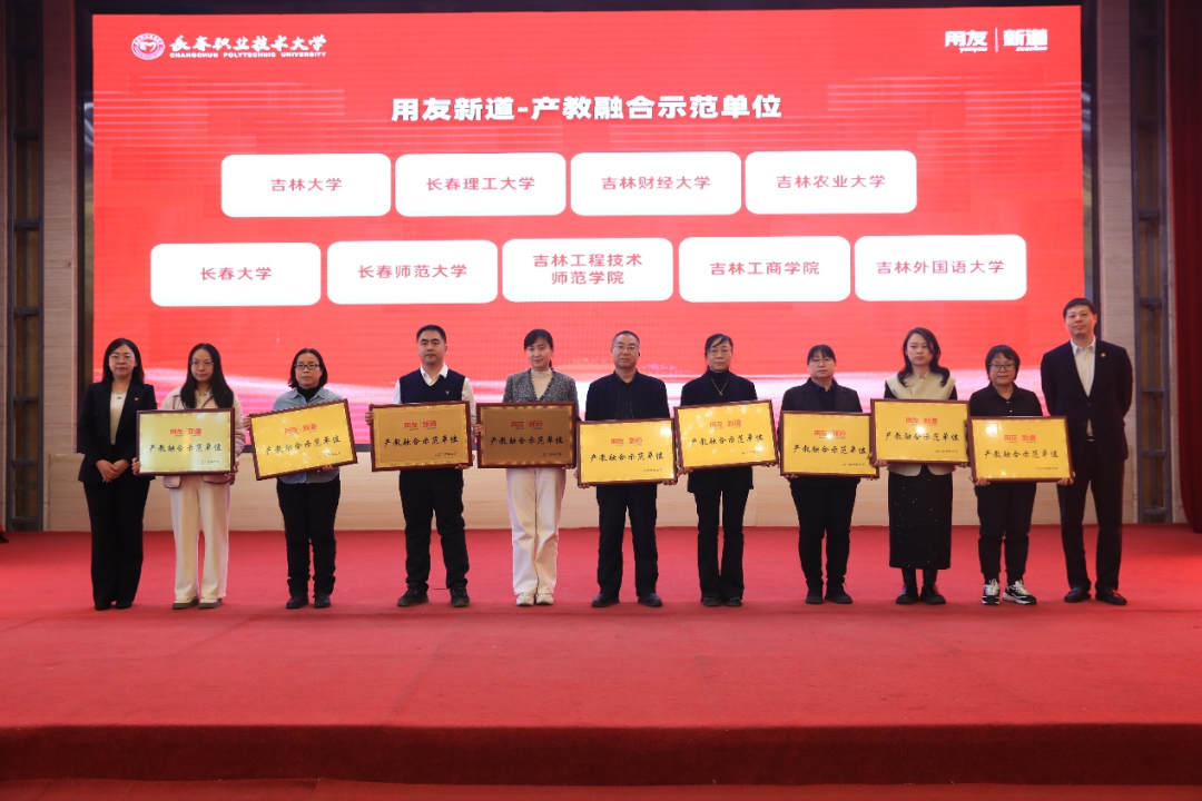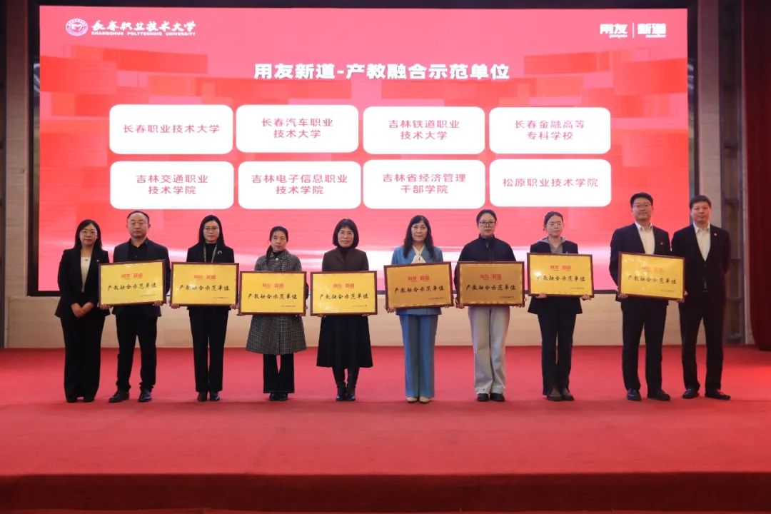 论坛期间,用友新道为吉林省内部分院校颁发“用友新道-产教融合示范单位”授牌。旨在深化产教融合,推动教育与产业紧密结合。