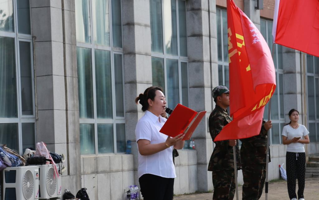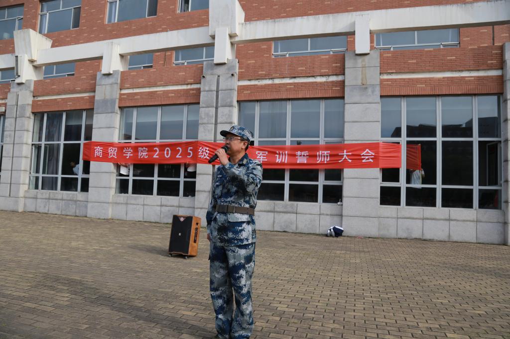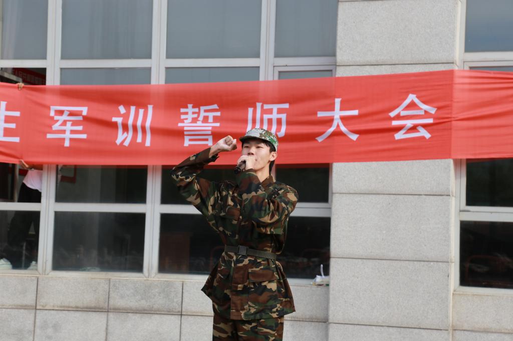 随后,军训七营营长赵春雷同志代表全体教官发言。他明确了本次军训的训练目标、内容安排和纪律要求,并代表全体教官庄严承诺,将以良好的军人形象、过硬的军事素质科学组训、文明带训,确保军训任务高标准、高质量完成。