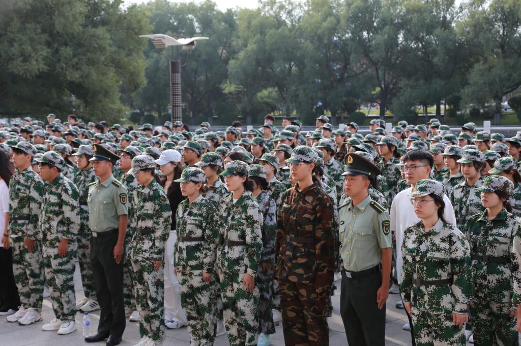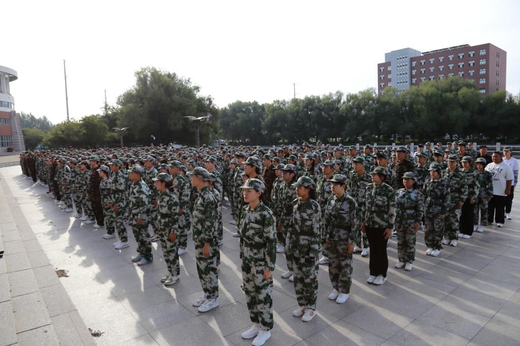 清晨7时,晨光微熹,广场上已是一片青春的海洋。在激昂雄壮的军乐声中,全体新生在各营队教官和辅导员的指挥下,迅速整队集合,以专业为单位排列成整齐的方阵。他们身着迷彩,精神抖擞,目光坚定,展现出商贸学子昂扬向上的精神风貌,静候大会的开始。