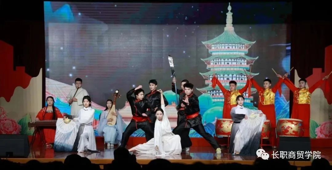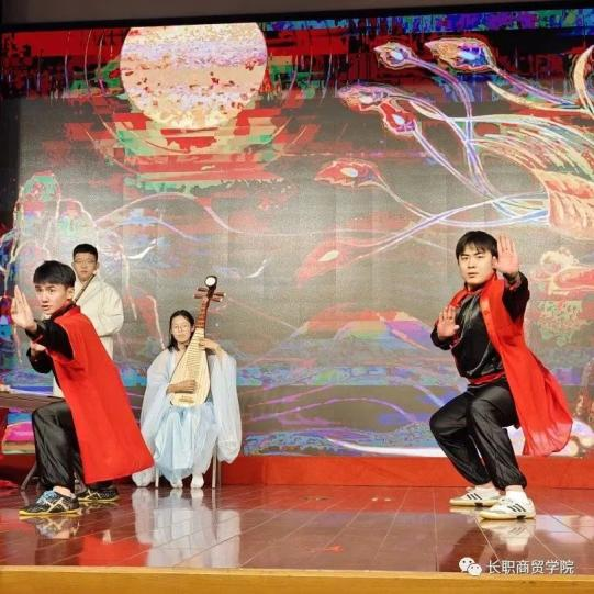 鼓声震天,激荡着我们的心灵;乐曲悠扬,诠释着我们的文化。这是一场集音乐、武术、表演于一体的盛宴。在历史的长河里,传统民族乐器永远是一颗耀眼的行星。竹笛、古筝、琵琶协同演奏,用民乐奏响经典旋律,创新古乐演绎形式,以声音彰显文化自信。在商贸学子的倾情演绎下,无论是音色、韵味、表演方式皆具有浓厚的中华色彩,蕴藏着中华民族独有的精神魅力。