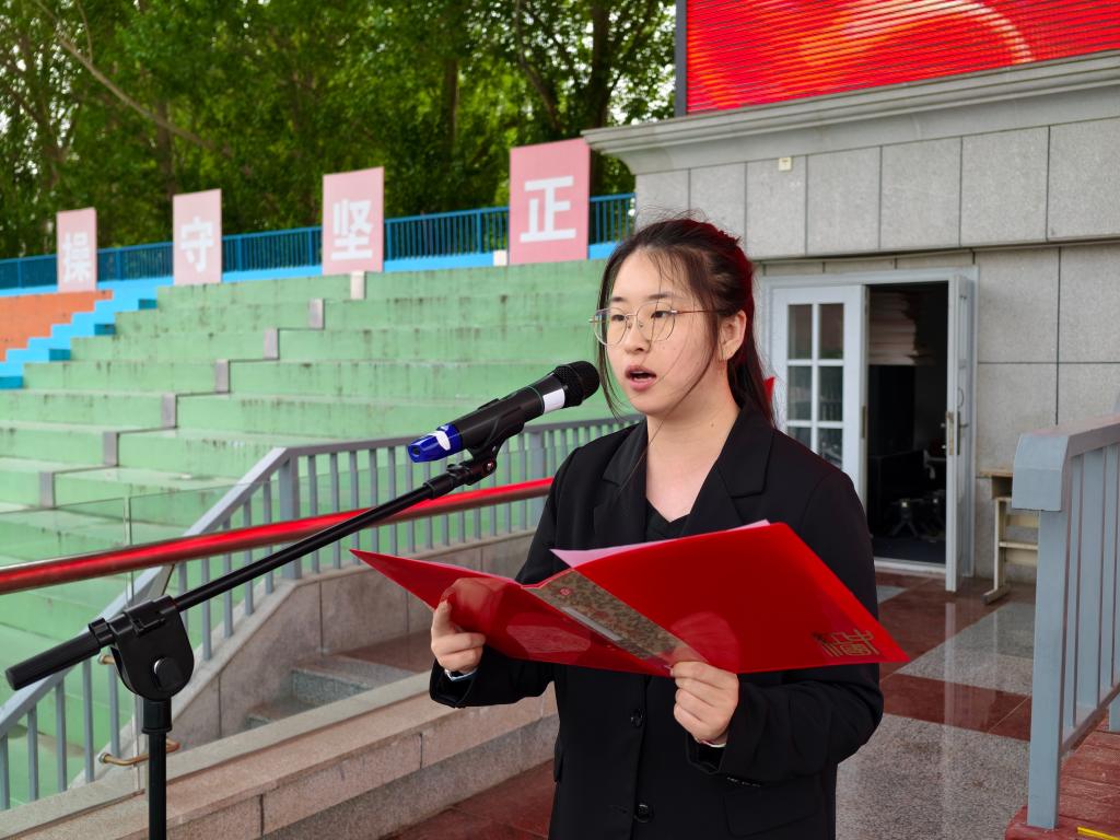 beats365亚洲版官网员工会主席团成员潘站栋带领全体在校生进行了庄严的宣誓:“铸诚精艺,博识通商;加强自我,超越自我;以智启技,以勤铸艺;追求卓越,全力以赴;勇往直前,不负韶华。”誓言铿锵有力,回荡在操场上空,彰显了商贸学子的坚定信念和决心。