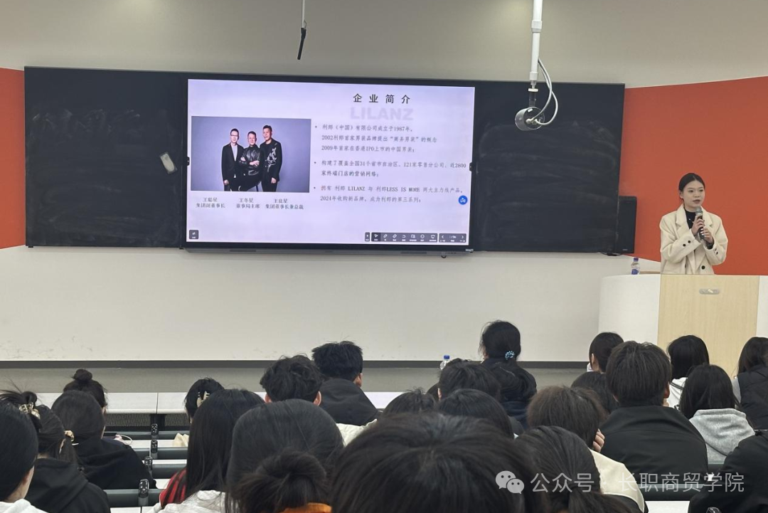 宣讲会伊始,利郎(中国)有限公司的代表以一段精彩的视频向同学们展示了集团的发展历程、企业文化以及在时尚领域的卓越成就。随后,集团的人力资源负责人详细介绍了本次校园招聘的岗位需求、职业发展路径以及福利待遇。利郎集团为同学们提供了丰富多样的岗位选择,同时,集团还十分注重员工的职业发展,为新员工制定了完善的培训计划和晋升机制,让同学们看到了广阔的发展空间。
